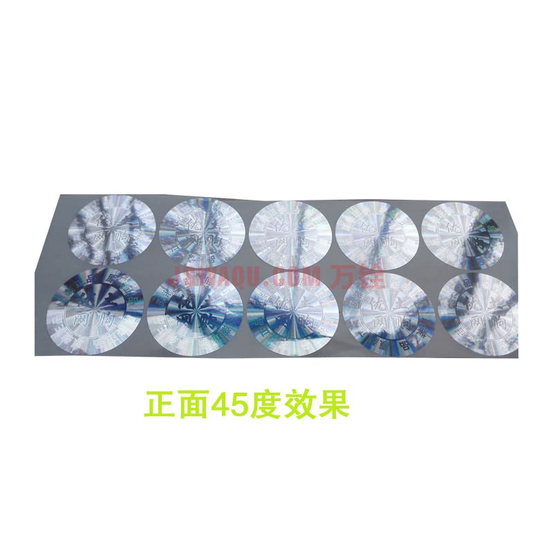 激光鐳射防偽標簽一般有亮銀或亮金兩種顏色材質,其他顏色或材質可根據產品特性及使用條件進行定制。